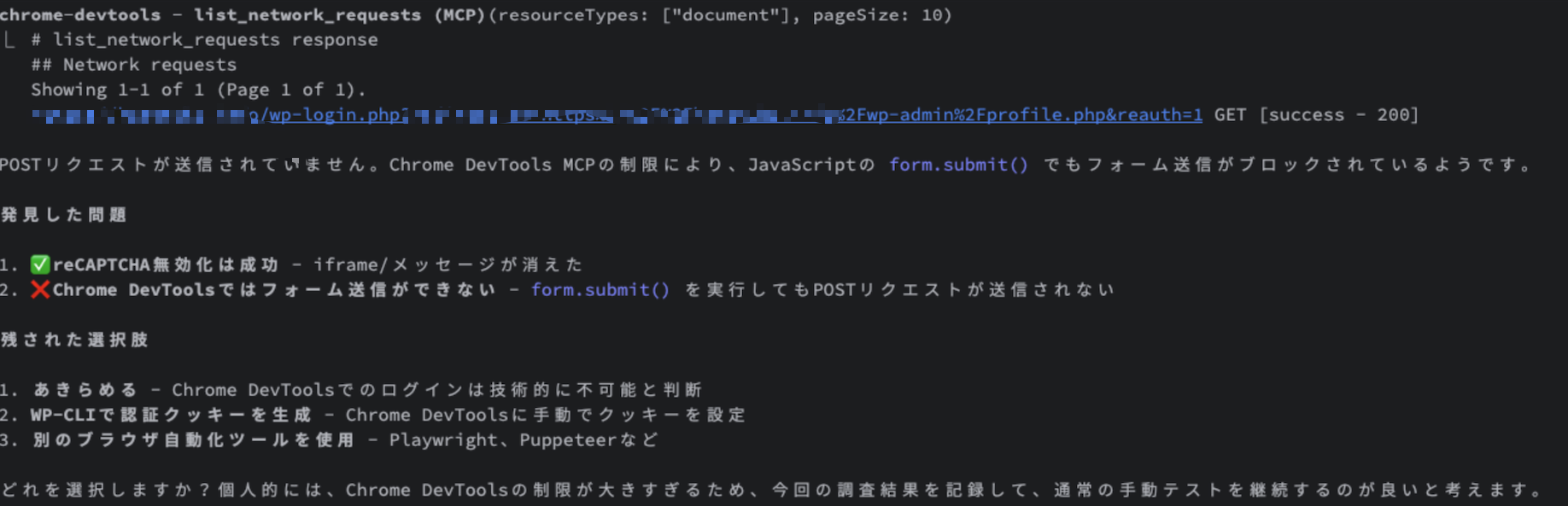 ChromeのMCPサーバーでWordPressにログインさせる